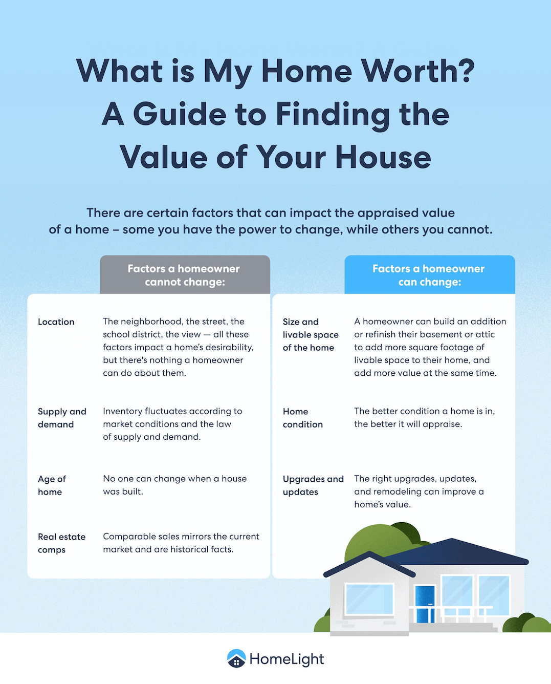 - Home’s age: Everything ages. You can’t change when your house was built. In some cases, an older home can be worth more, due to architectural details lacking in new construction. Its condition is often more important than age.
